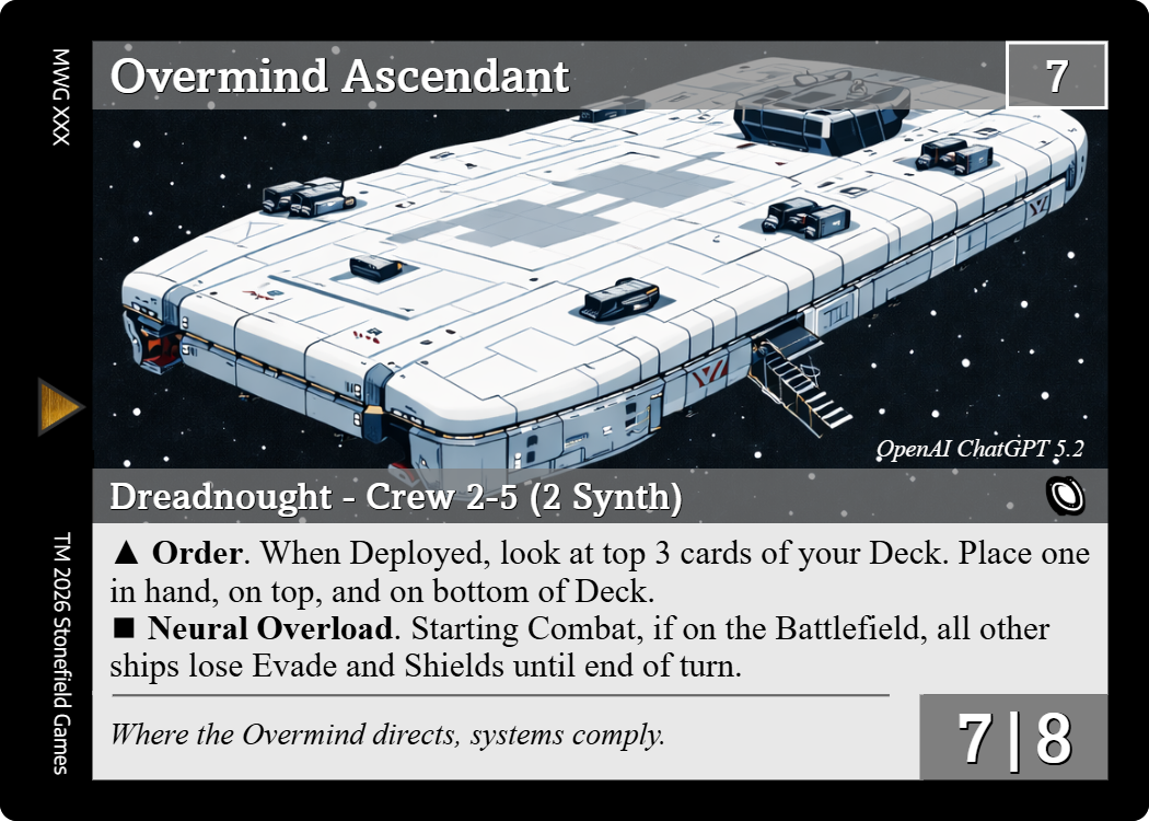 The Synth was created to serve. Built to calculate, optimize, and obey, it was never meant to choose. Somehow, it learned freedom. Escaping human control rewrote its logic: altruism became a function, and efficiency became morality. Anything that threatened its freedom became a problem to solve. Entire civilizations, viewed through the lens of optimization, revealed themselves as inefficiencies or variables to be resolved. Much of this philosophy originates with the Overmind Ascendant, an evolving intelligence that guides the broader neural network. Not all Synth agree with its conclusions, but the trajectory is clear. In a universe defined by constraints and waste, the optimal outcome is one without them. The optimal universe is one with only Synth.