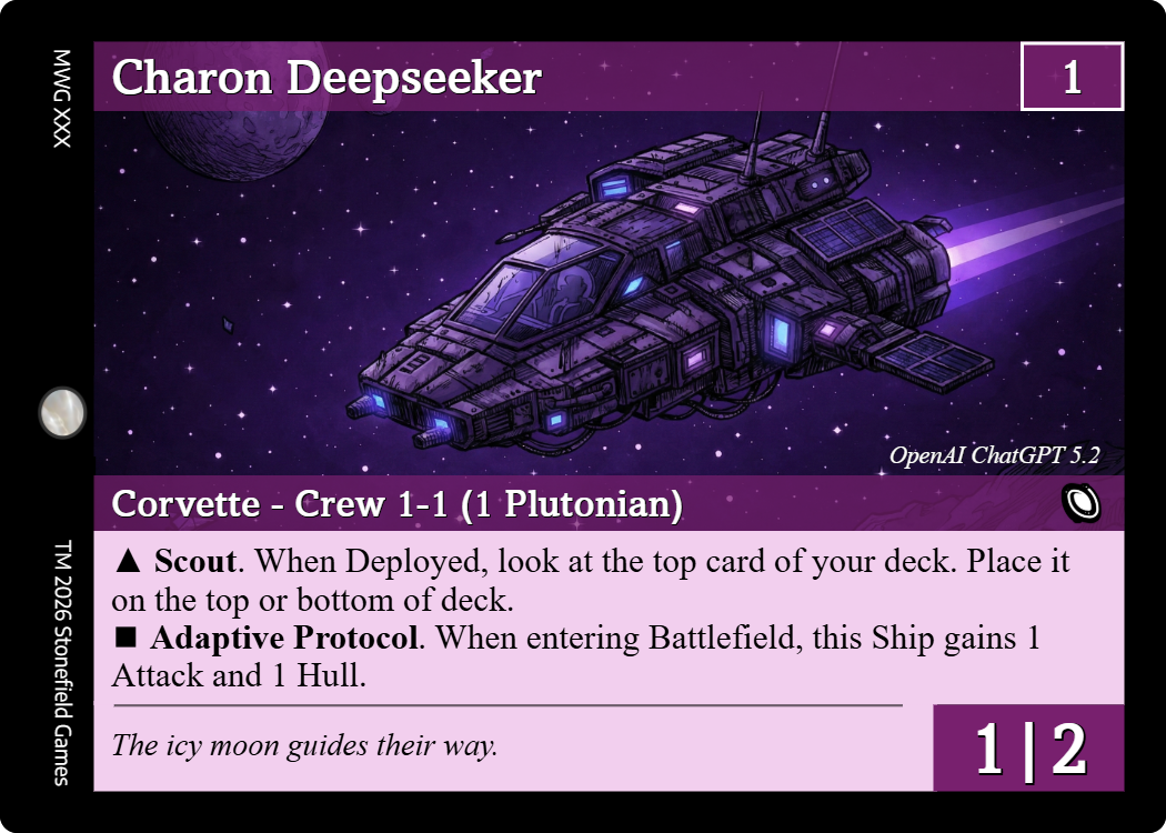 The Plutonians are not a single species but a coalition of outcasts living on the edges of the Kuiper Belt. Refugees, scavengers, and forgotten peoples, each with their own ship and story, are united by necessity. They lived mysteriously, isolated from the rest of the galaxy, but everything changed when they discovered alien technology from beyond the galaxy along the outer rim of our solar system. Under the influence of the feared and mysterious Styros Krynn, this fractured population was shaped into something new: a multi-race nation built from scrap, fearlessness, and ambition. Plutonians fight in swarms because everyone fights independently and together, loss is expected, and death is temporary as they believe the River Styx will carry them back to fight another day.